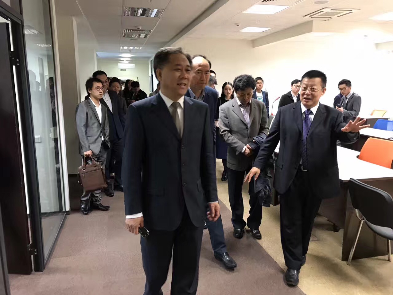 After the ceremony, Luan Shaohu (chairman of the partnership of Deheng Lawyers Group) invited Yu Jihai (Minister-Counselor of the Education Section of the Embassy of P.R. China in Russia), Yang Haiyi (CEO of Greenwood Business District), Zhang Xiaodong (first secretary of the Education Section of the Embassy of P.R. China in Russia) and the more than 30 presented Chinese students studying in Russia to visit the new Moscow office of Beijing DHH Law Firm at Floor 3, Building 17, Greenwood, and took photos to mark the occasion.